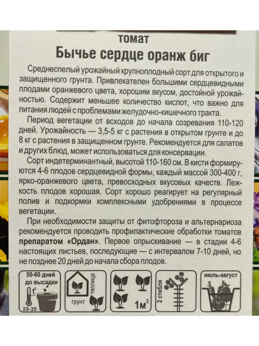 Среднеспелый урожайный крупноплодный сорт для отрытого и защищенного грунта. Привлекателен большими сердцевидными плодами оранжевого цвета, хорошим вкусом, достойной урожайностью. Содержит меньшее количество кислот, что важно для питания людей с проблемами желудочно - кишечного тракта.